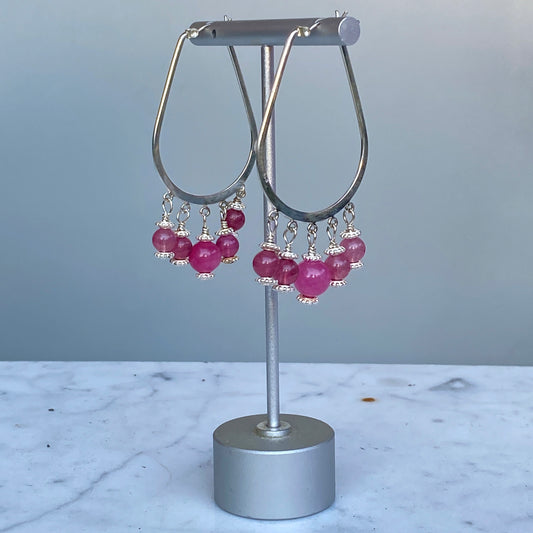 Pink Tourmaline Sterling Silver Hoop Earrings