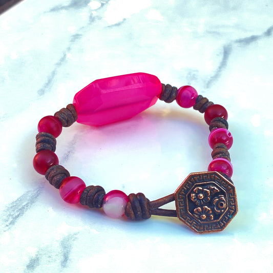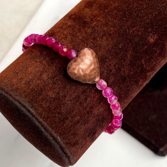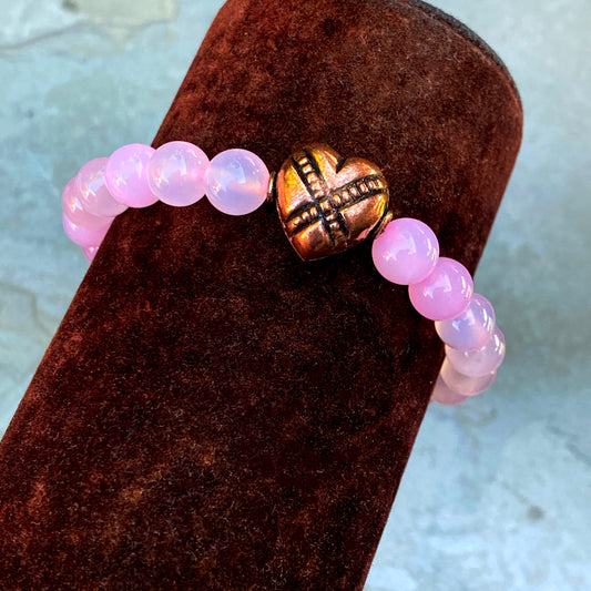 Pink Rhodonite gemstone and Copper Beaded Stretch Bracelet