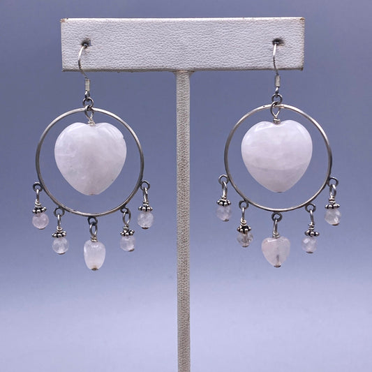 Pale Rose Quartz Heart and Sterling Silver dangle Earrings