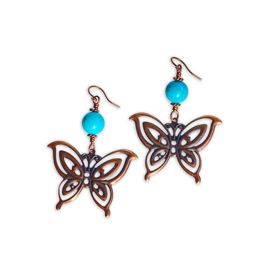 Natural Turquoise gemstone with Copper Butterfly Dangle Earrings