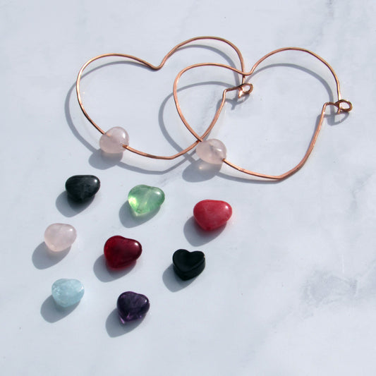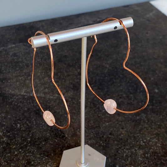 Rose Quartz Hearts on Copper Heart Hoop Earrings