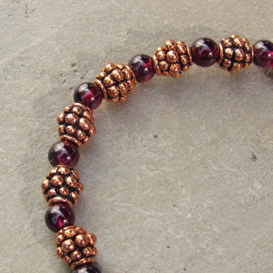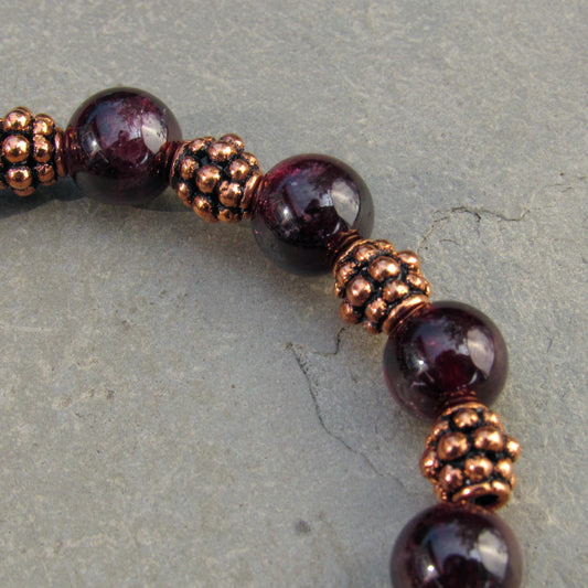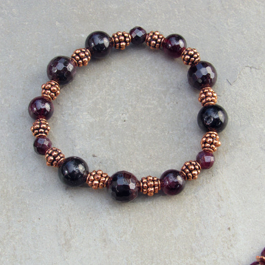 Garnet gemstones with copper stretch bracelet