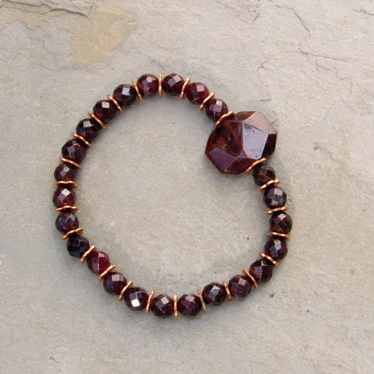 Garnet gemstone and copper stretch bracelet
