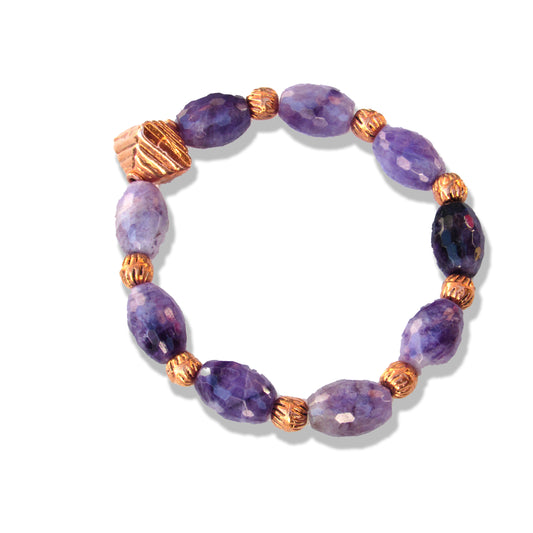 Amethyst gemstone and copper crystal beaded stretch bracelet