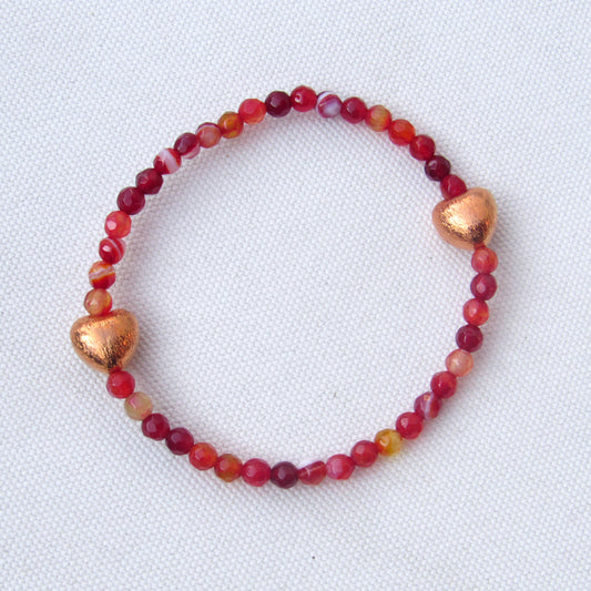 Red Banded Agate and Copper Gemstone Beaded Stretch Bracelet