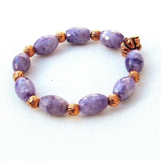 Charoite gemstone and Copper beaded Stretch bracelet