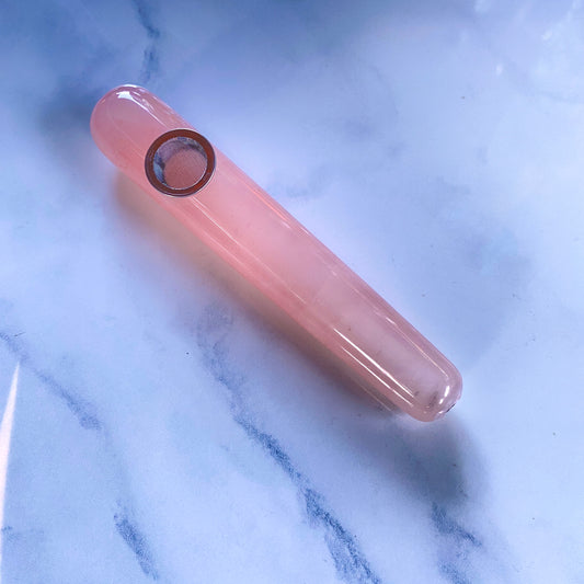Rose Quartz Gemstone Rounded Nose Smoking Pipe