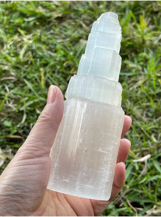 Large Selenite Gemstone Crystal Tower 6" Tall