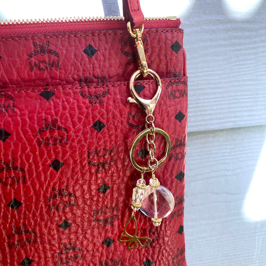 Quartz gemstone with brass Butterfly Zipper Charm