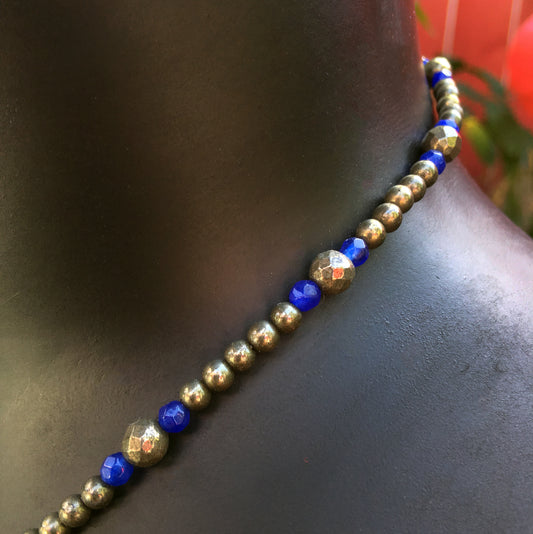 Pyrite Pendent necklace with Blue jade Gemstones