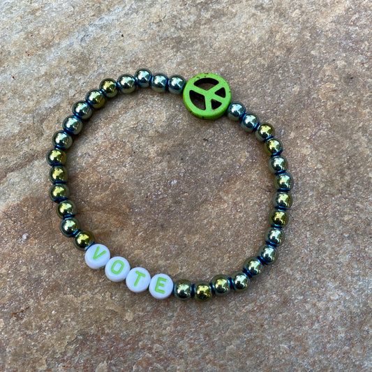 Unisex Green Hematite Gemstone VOTE bracelets