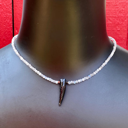 Black Agate Gemstone Horn on Moonstones w/ Sterling Silver Choker