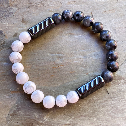 Men’s Black Labradorite, Hematite and Howlite "Balance" gemstone bracelet