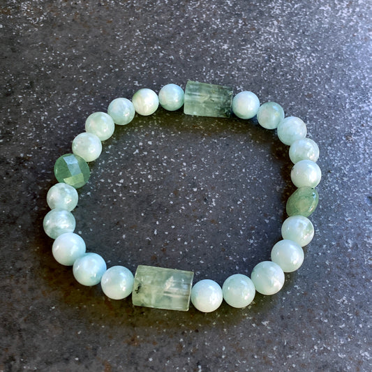 Green Moonstones, Aventurine and Prehnite Gemstone stretch bracelet