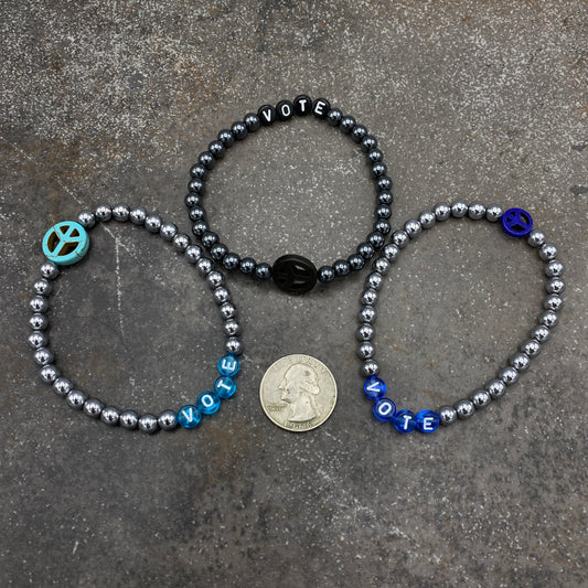 Unisex Hematite Gemstone VOTE Bracelet