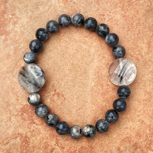 Men’s Tourmalated Quartz & black Labradorite Gemstone Bracelet