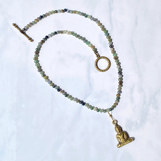 Blue Spot Jasper gemstone and brass Buddha pendant necklace