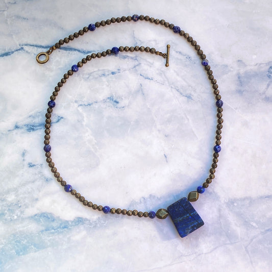 Pyrite Gemstones and Lapis Lazuli pendant Necklace