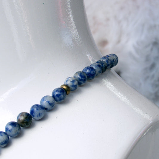 Brass Moon on blue agate gemstone beaded choker and necklace