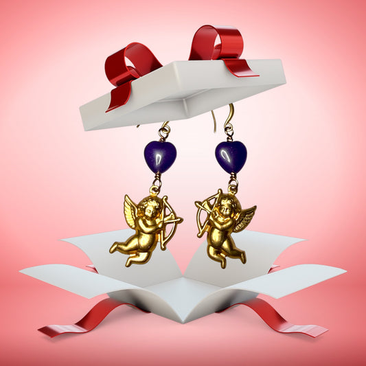 Cupid and Amethyst Heart Dangle Earrings