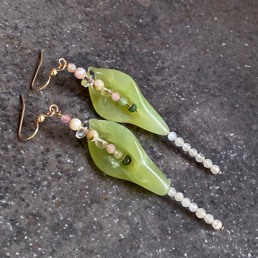 Jade Calla Lily 14 KT GF and Gemstone Drop Earrings