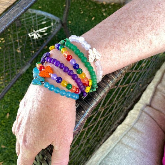 Jade & Hematite Gemstone Howlite butterfly stretch bracelets.