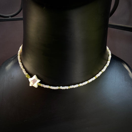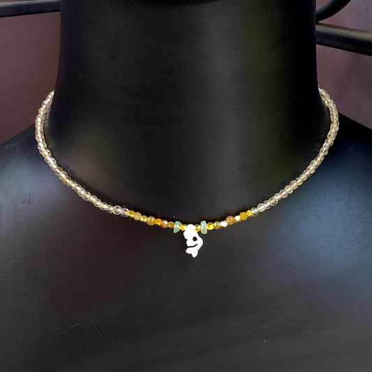 Mother of Pearl Mermaid choker with lemon Quartz, tourmaline and Ethiopian Fire Opals