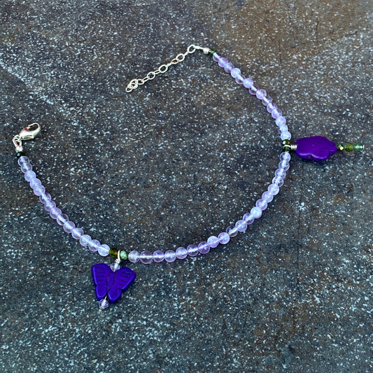 Amethyst gemstones, Green Tourmaline, and Howlite, Sterling Silver Anklet