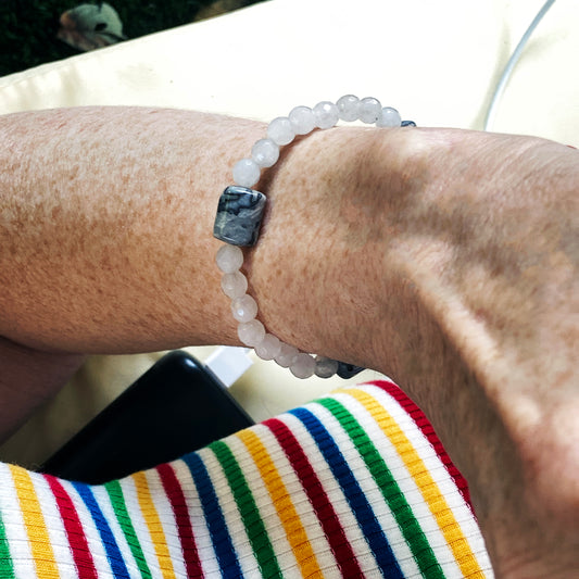 Women's White Jade & Snakeskin Jasper Gemstone Stretch Bracelet