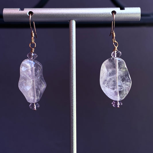 Pink chalcedony gemstone & quartz sterling silver drop earrings