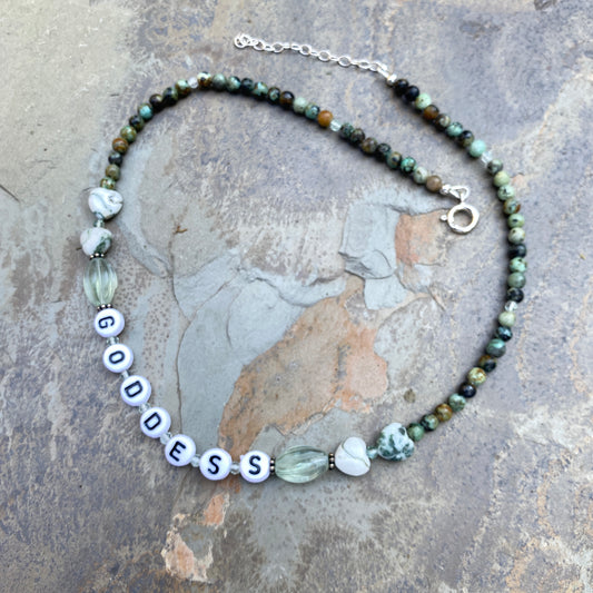 Green Moss Agate GODDESS Fluorite and African Turquoise gemstone Choker