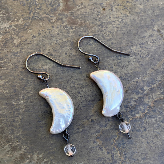 Mother of Pearl Moon and White Topaz Gemstone Drop Earrings