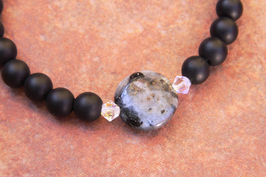 Women's Amethyst and Onyx Heart Gemstone Necklace