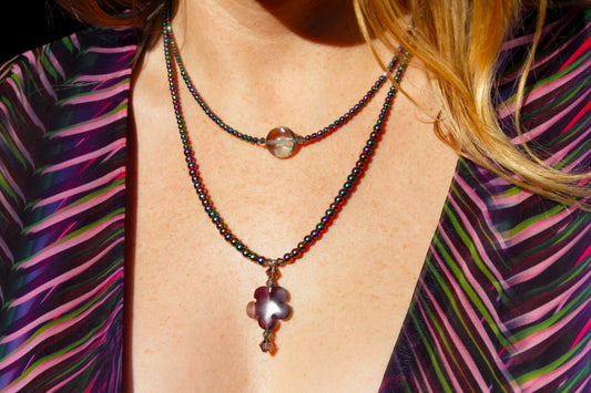 Women's Rainbow Heamatite and Fluorite Gemstone Double Necklace