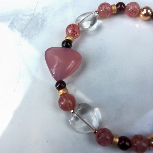 Women's Cherry Quartz, Chalcedony and Garnet Gemstone Bracelet