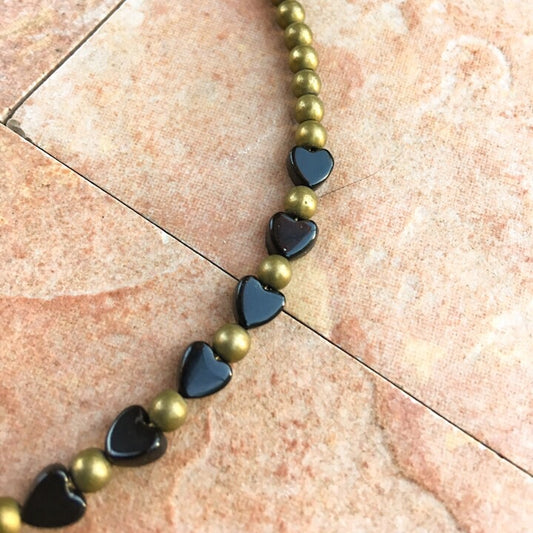 Black Skull & Crystal with Hematite gemstone heart Necklace
