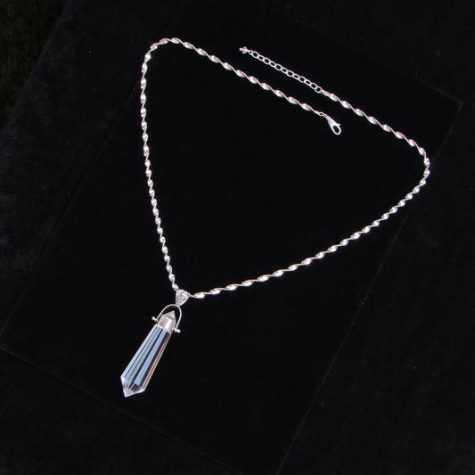 Clear Quartz Point Pendant on Vintage Renewed Chain