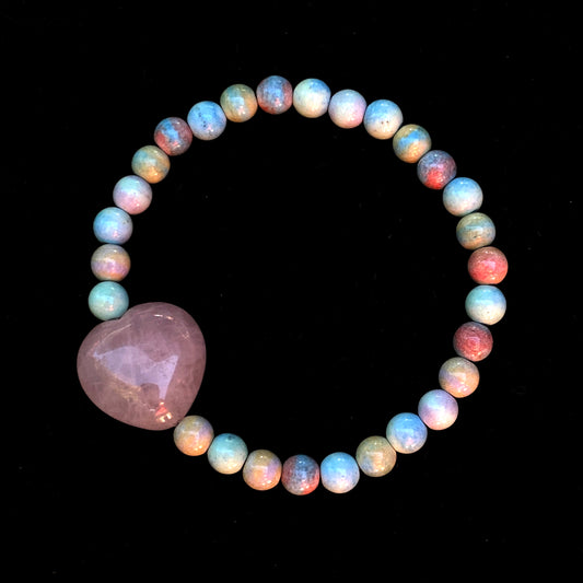 Alashan Agate and Rose Quartz Heart gemstone Bracelet