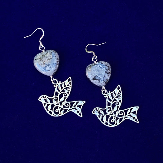 Map Jasper gemstone Heart Dangle Earrings