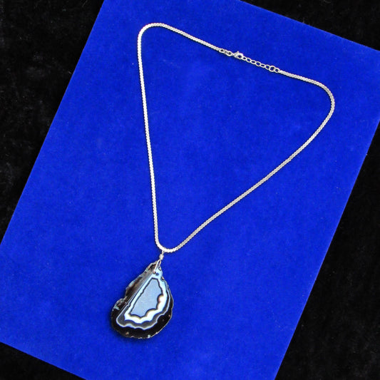 Black Banded Agate gemstone slice on Vintage Silver Chain