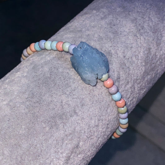 Alashan Agate and Aquamarine gemstone Bracelet