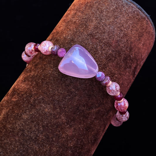 Chalcedony, Cherry Quartz, Garnet, and pink Tourmaline gemstone bracelet