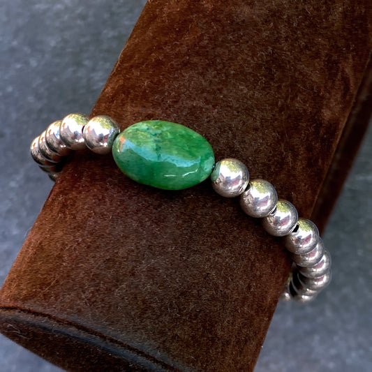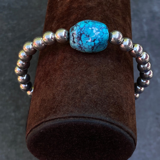 Genuine Turquoise and Sterling Silver Beaded Stretch Bracelet