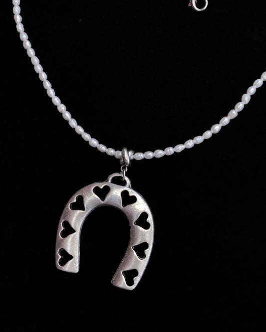Pearl beaded necklace with silver plated Horseshoe pendant