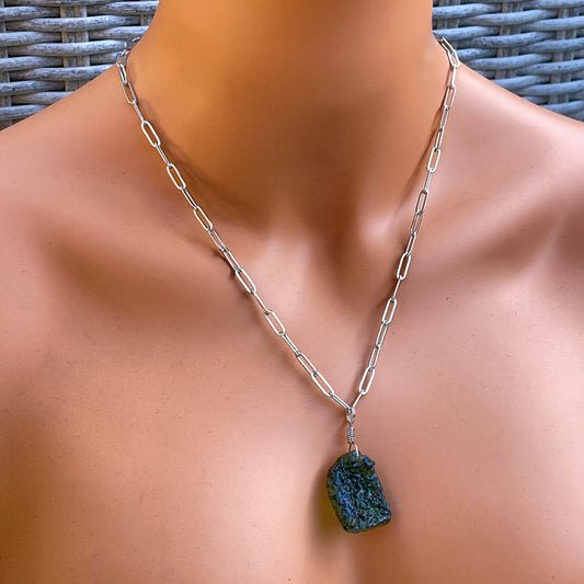 Hematite Butterfly and Quartz gemstone on sterling silver chain necklace