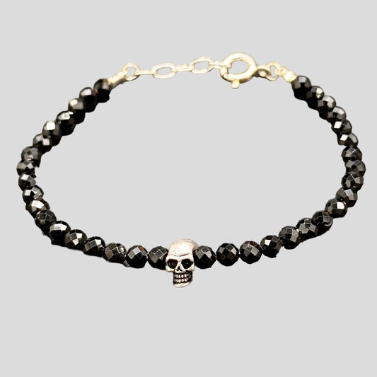Black Spinel gemstone and Sterling Silver Skull Bracelet