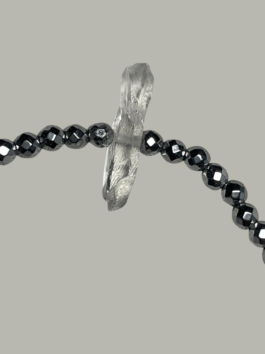 Dainty silver Hematite and Quartz Beaded Stretch Bracelet