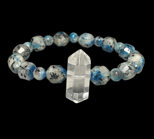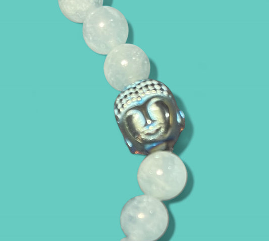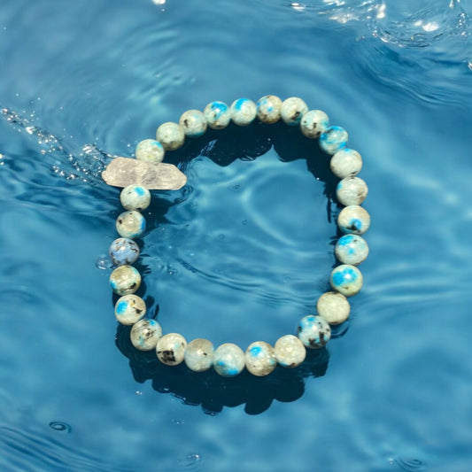Turquoise and Stainless Steel Beaded Stretch Bracelet