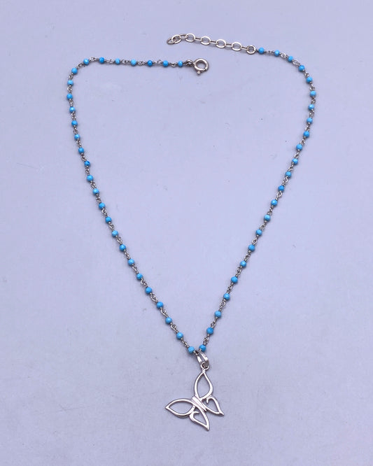 Turquoise and Sterling Silver Butterfly Beaded Necklace