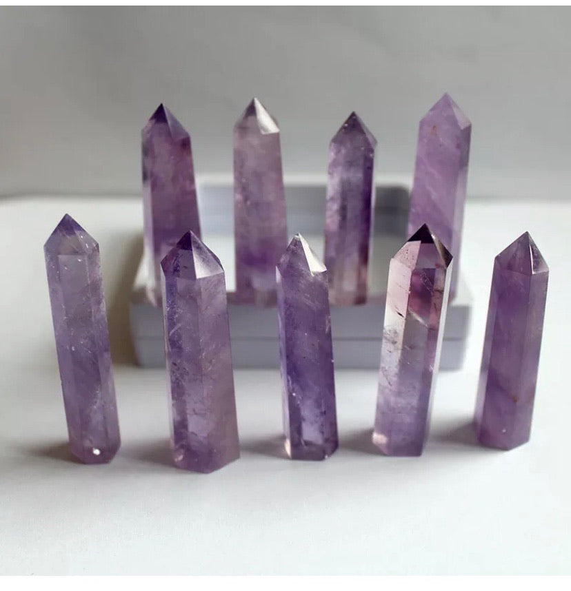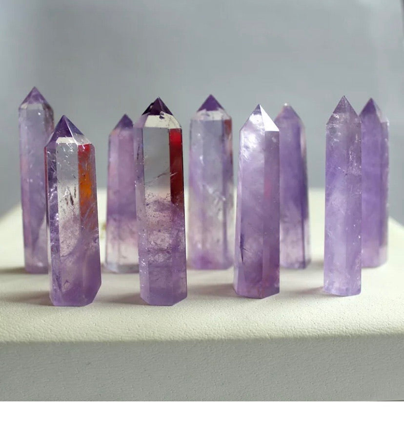 Natural Purple Amethyst gemstone Quartz Crystal Point Wand